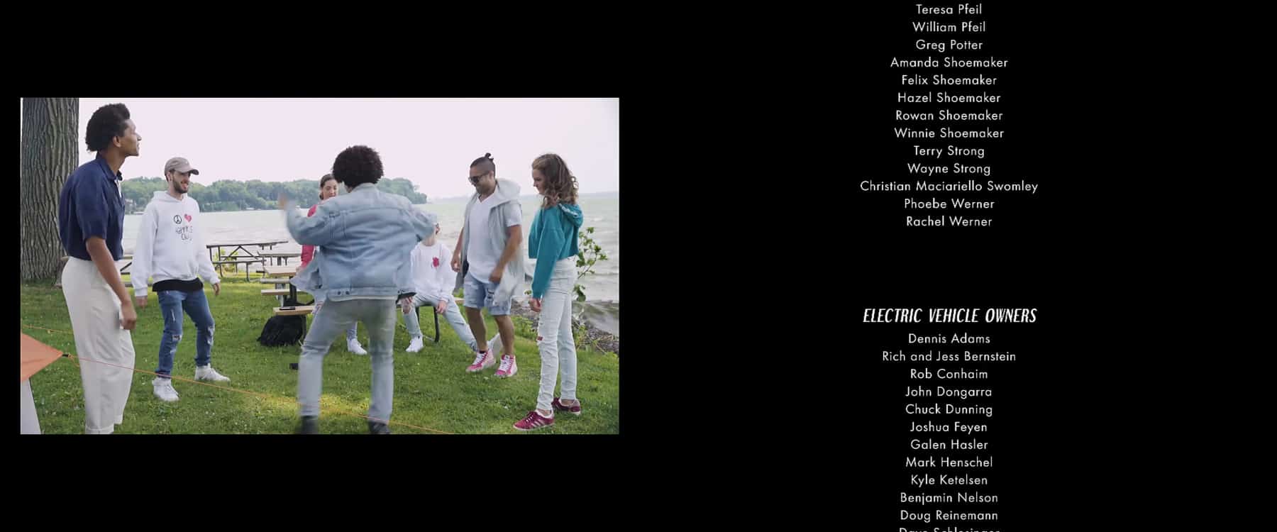 This is a jib shot from the massive dance number at the end of EV Land. It includes six ballet dancers, a hip-hop crew, and a load of EV owners. For this shot, we shut down a portion of a road in Madison.